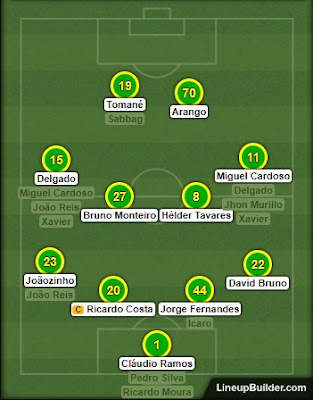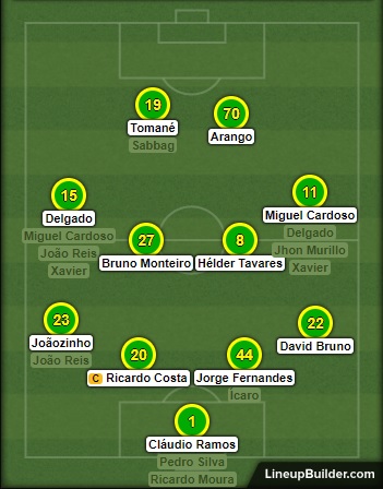 Sem Pedro Nuno, o 4x2x3x1 da época passada deu lugar a um 4x4x2, agora com Arango ao lado de Tomané; De resto, quase tudo igual;